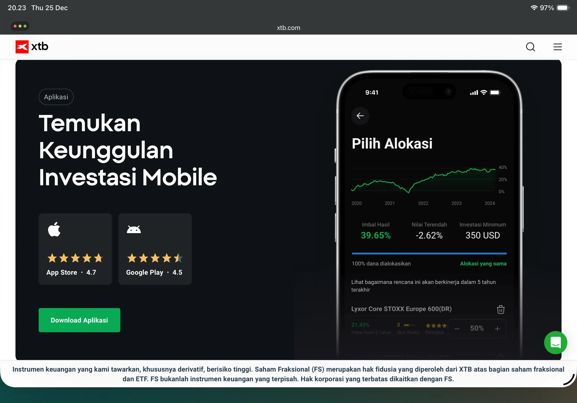 Dengan komisi 0% hingga EUR 100.000 per bulan, aplikasi XTB menjadi pilihan ideal untuk memulai investasi. Yuk kita mulai tutorialnya!