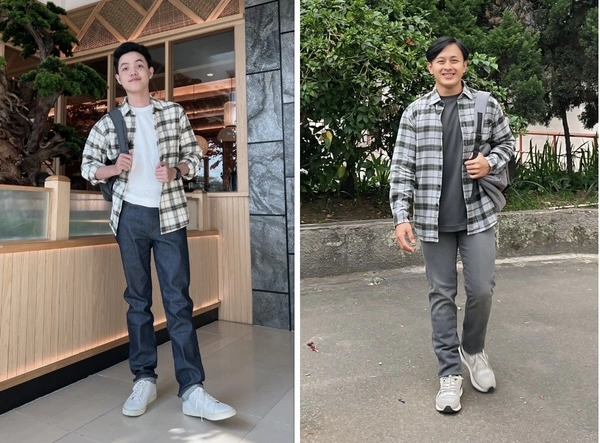 Pergi ke kantor semi-formal | Kemeja flanel (kerah reguler) + smart ankle pants + sepatu formal. |