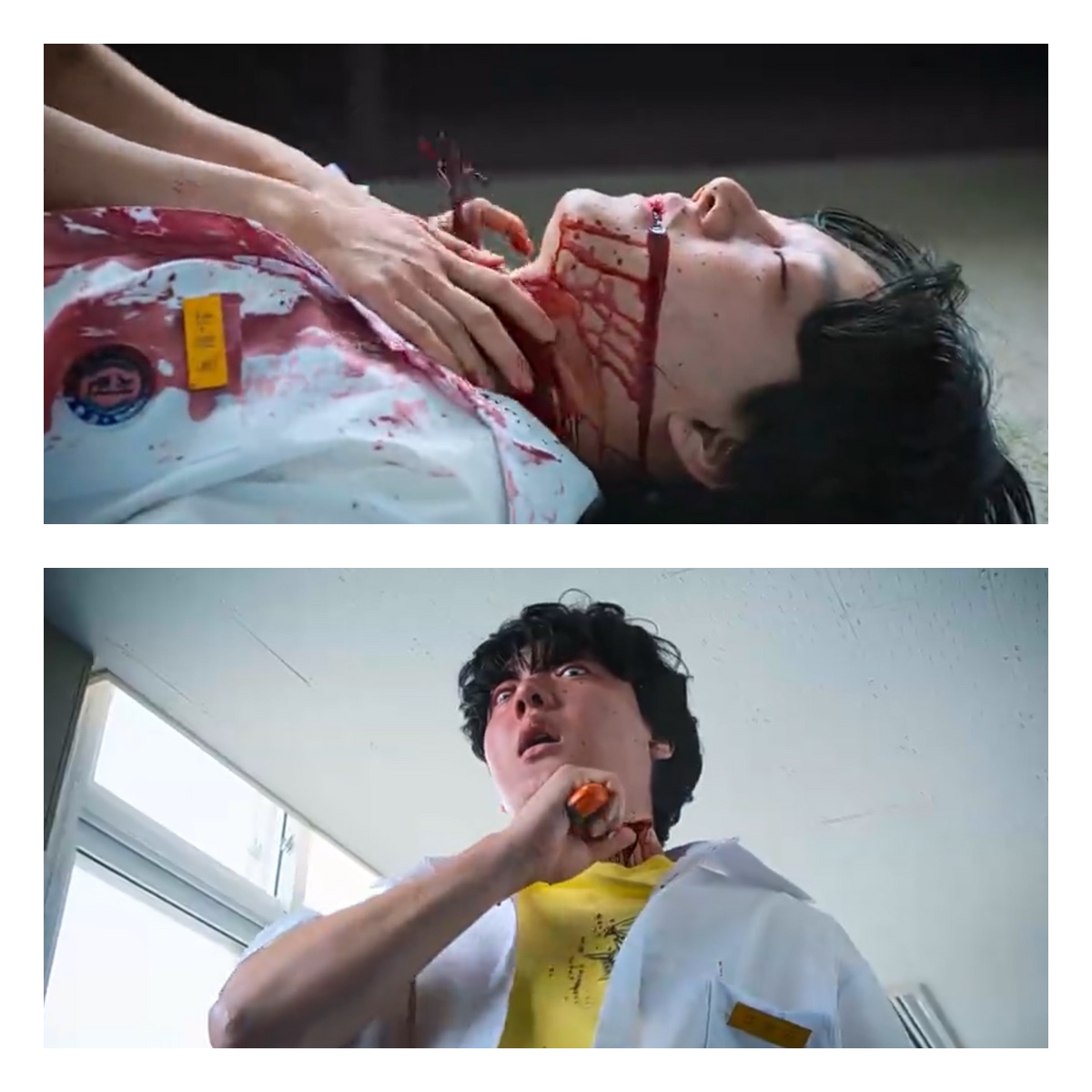 Hyeong-wook kesal. Males-malesan di kelas. Tiba-tiba dia berdiri dan membawa cutter. Langsung menyerang Se-ah sampai dia terdesak ke pintu dan pintu pecah. Ending-nya, cutter yang mengarah ke Se-ah malah berubah ke leher Hyeong-wook sendiri. Se-ah langsung kaget karena Hyeong-wook nekat gorok lehernya sendiri. Darah muncrat sampe ke wajah dan baju Se-ah.