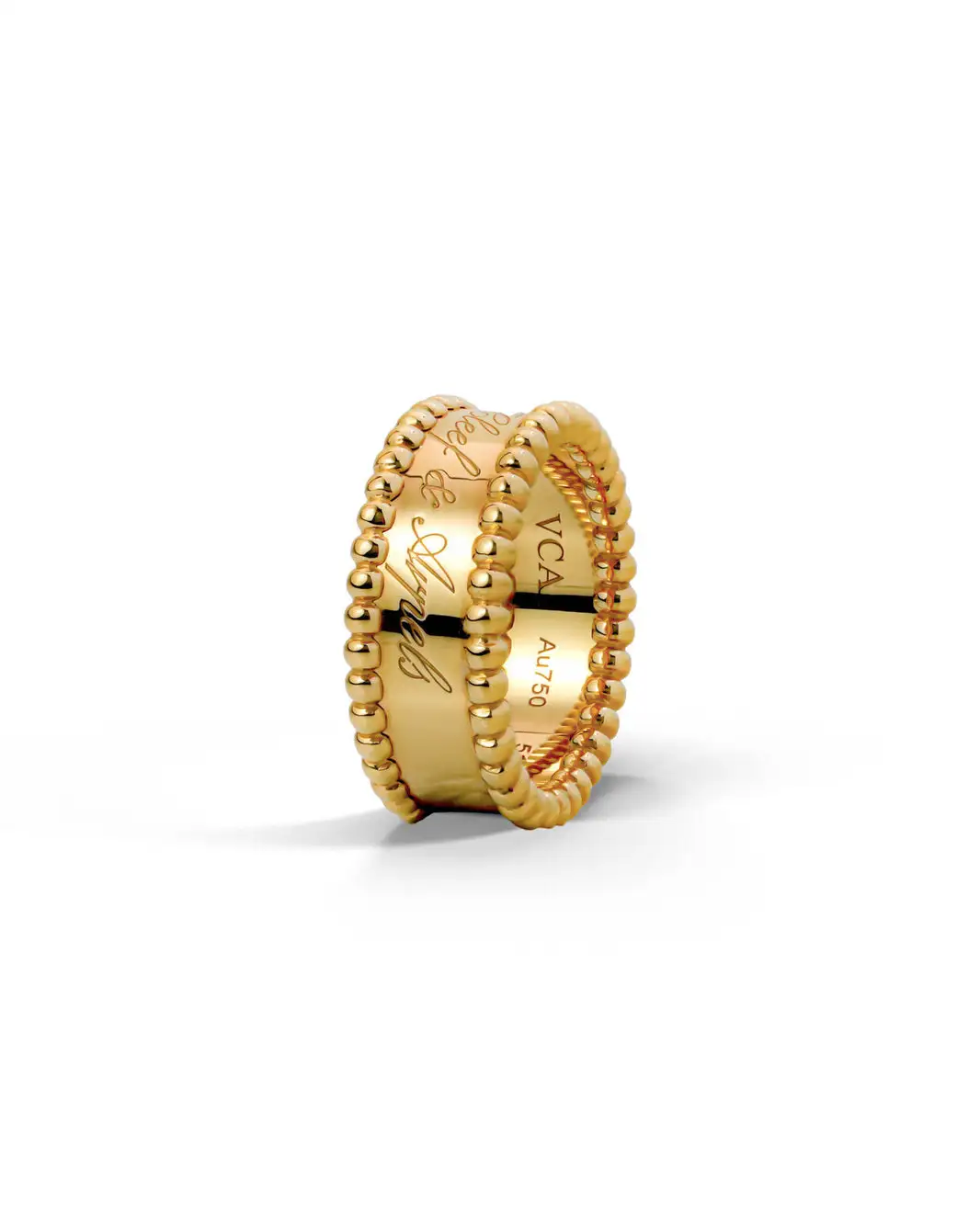 Spesifikasi: Cincin emas kuning 18K dengan desain beaded signature, lebar 5 mm, ukuran adjustable(biasa 50-54). Kondisi LIKE NEW, tahun 2024, harga Rp 37.800.000. Termasuk engraving halus dan finishing matte-glossy yang unik, tanpa batu tapi fokus pada tekstur.
